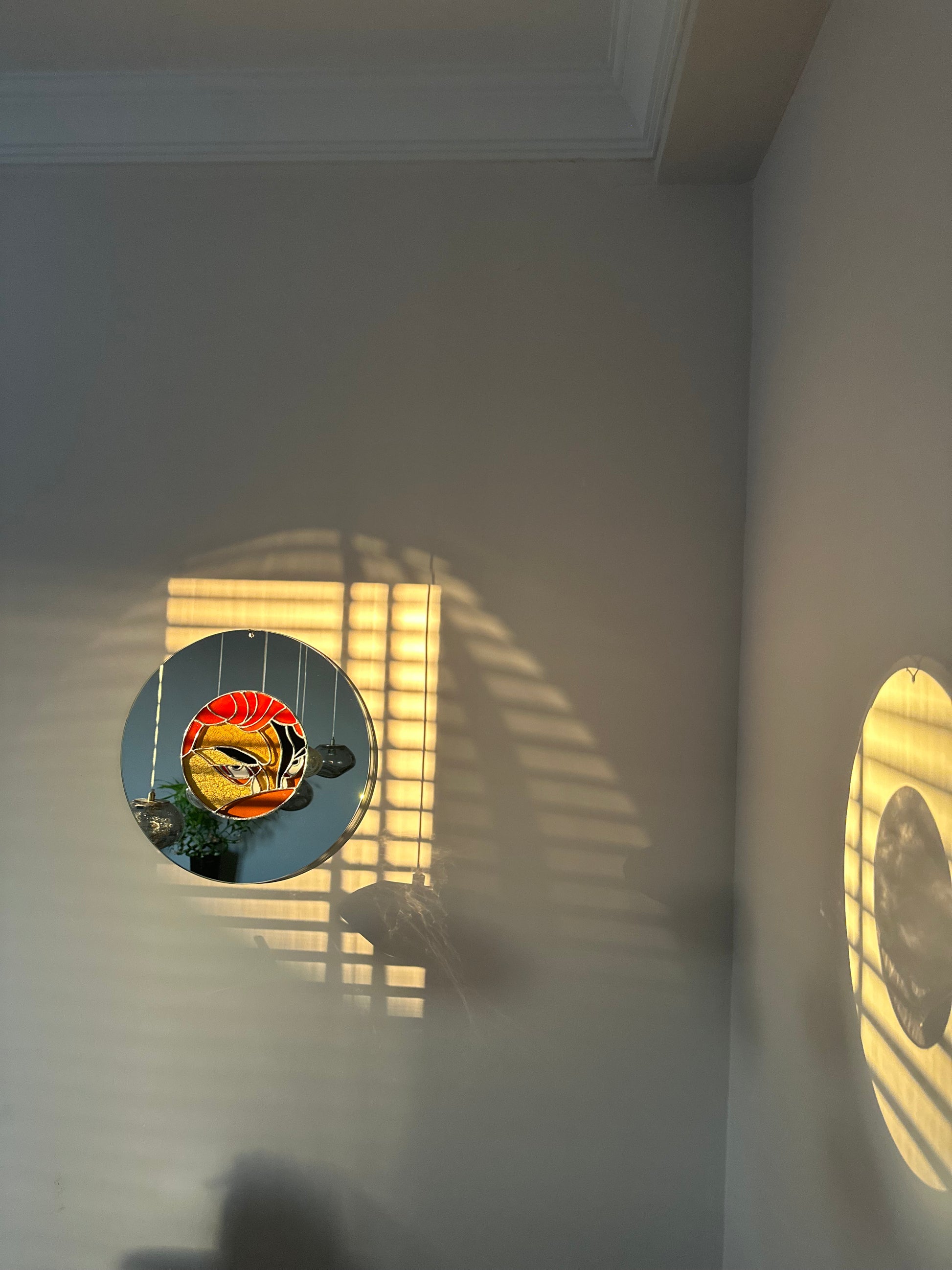 Fallen Angel Tiffany Vitray Ayna, sanat ve işlevi bir araya getiren zarif bir sun catcher tasarımıdır. Tiffany vitray tekniği kullanılarak el yapımı olan bu ayna, benzersiz bir düşmüş melek motifi ve renkli cam parçalarıyla dikkat çeker. Pencereye veya duvarda asarak ışığın içinden geçmesine ve ortamınızı aydınlatmasını sağlayabilirsiniz.